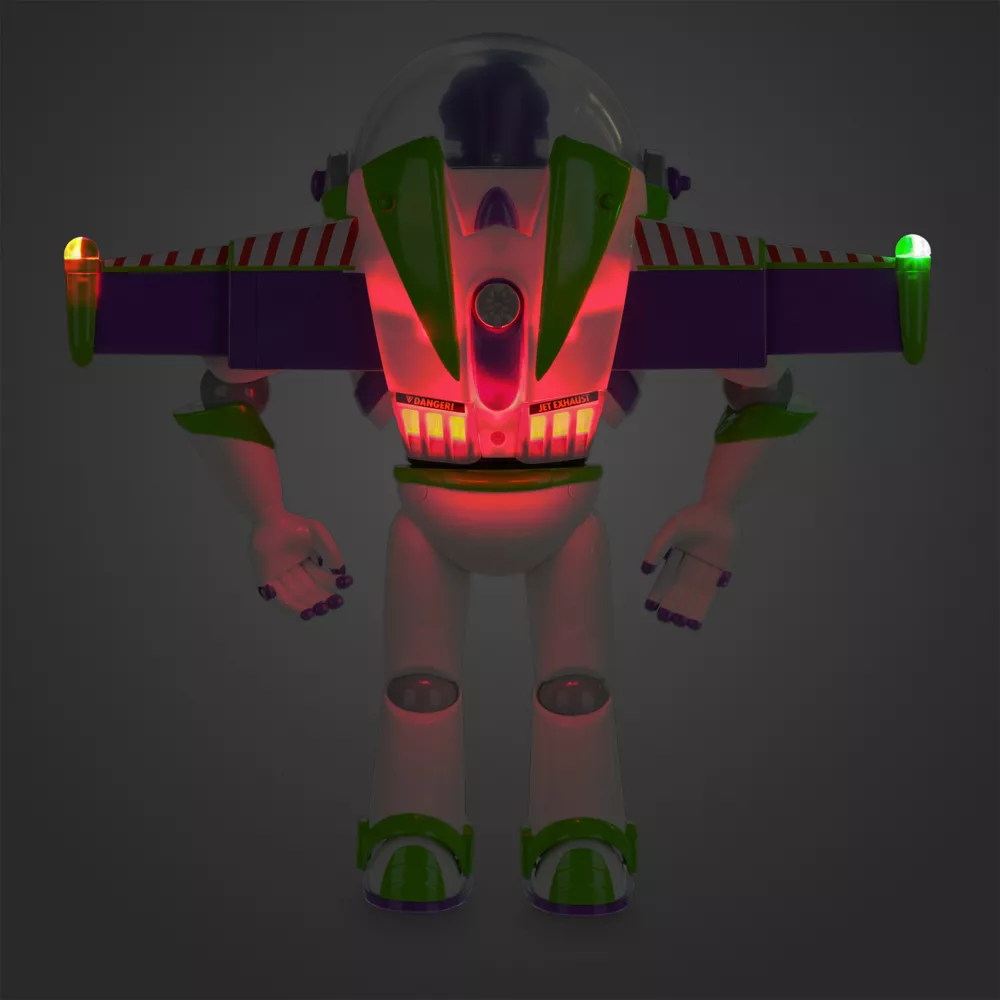 C’est parti pour des heures d’amusement vers l’infini et au-delà ! Plus vrai que nature, Buzz est équipé de sa fameuse combinaison de ranger de l’espace et d’un casque à visière rétractable. Il devient même bavard en compagnie d’autres personnages.